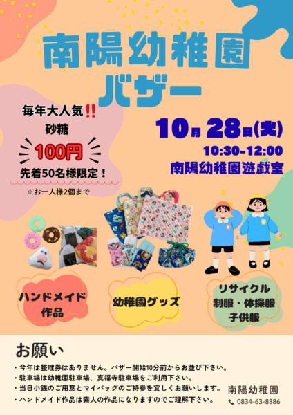 令和7年度の父母の会のバザーの開催日決定!10月28日(火曜日)です!