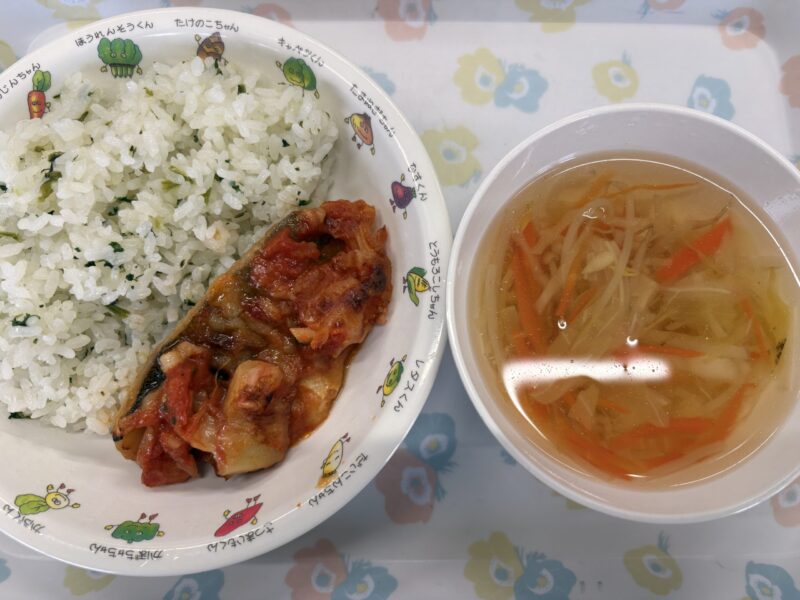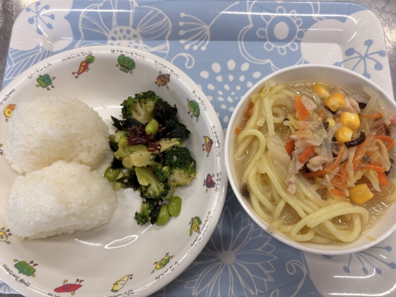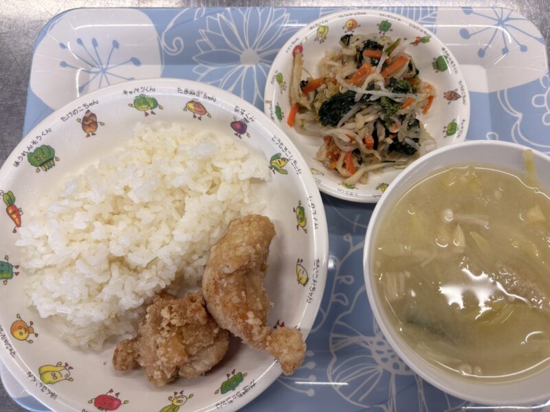 2月23日の週の給食です。発表会のお休みもあり3日分。唐揚げは定番で大人気でした。