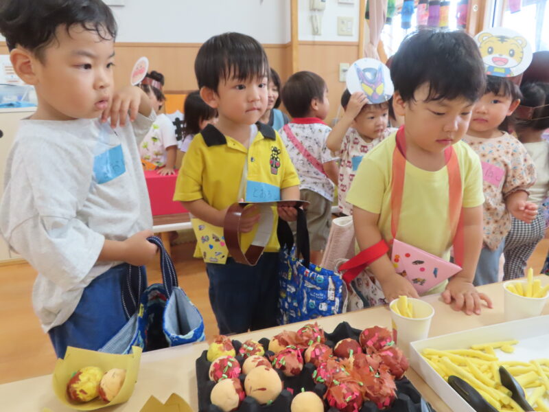 保育部ちゅうりっぷさんのお祭りに参加!ポテト・たこ焼き・金魚すくいなどなど!
