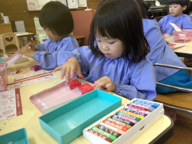 月刊誌の付録を制作して楽しみました!カニさんの競争です!