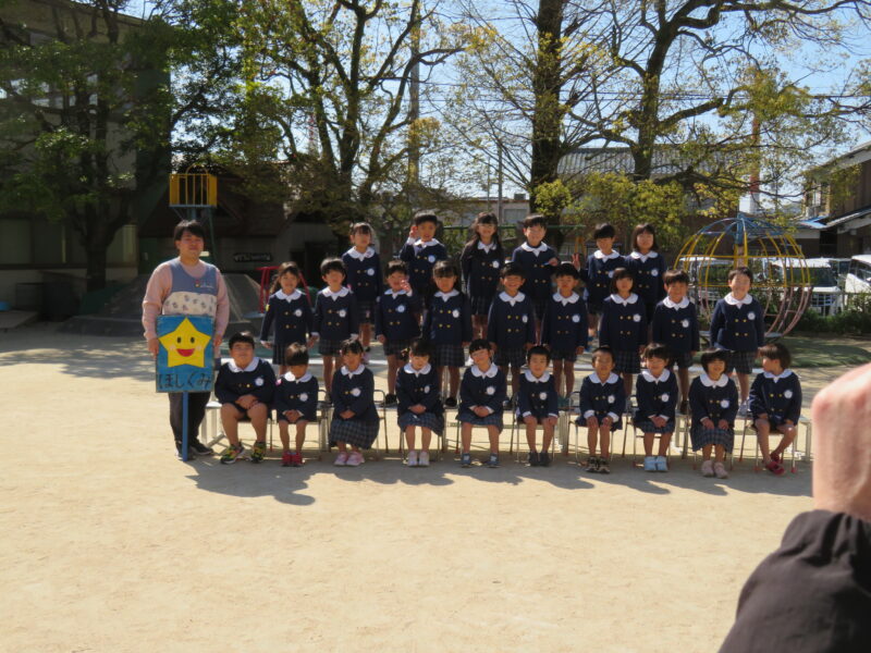 令和8年度の始業式です。新年長さん、新年中さんになって初の登園!張り切ってます!
