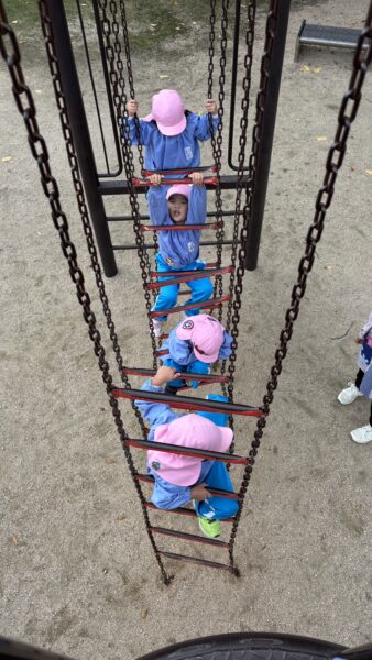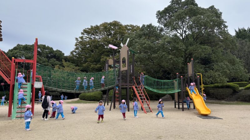 年少さん、園外保育で永源山公園へ出かけました。遊具を使ってのびのび遊びました!