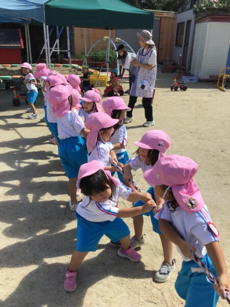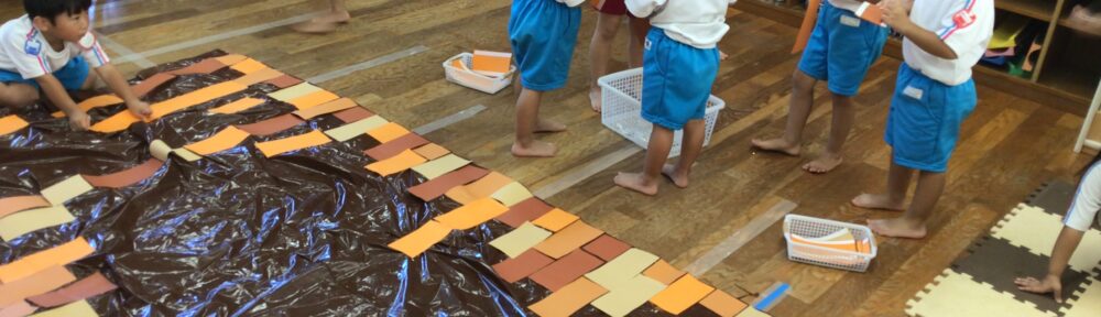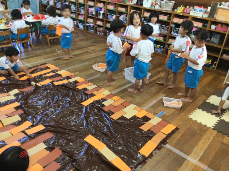 運動会の親子競技で使う「パン焼き窯」を制作中。この中でおいしいパンに変身するよ!