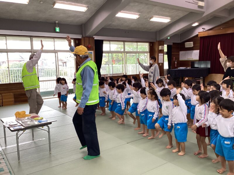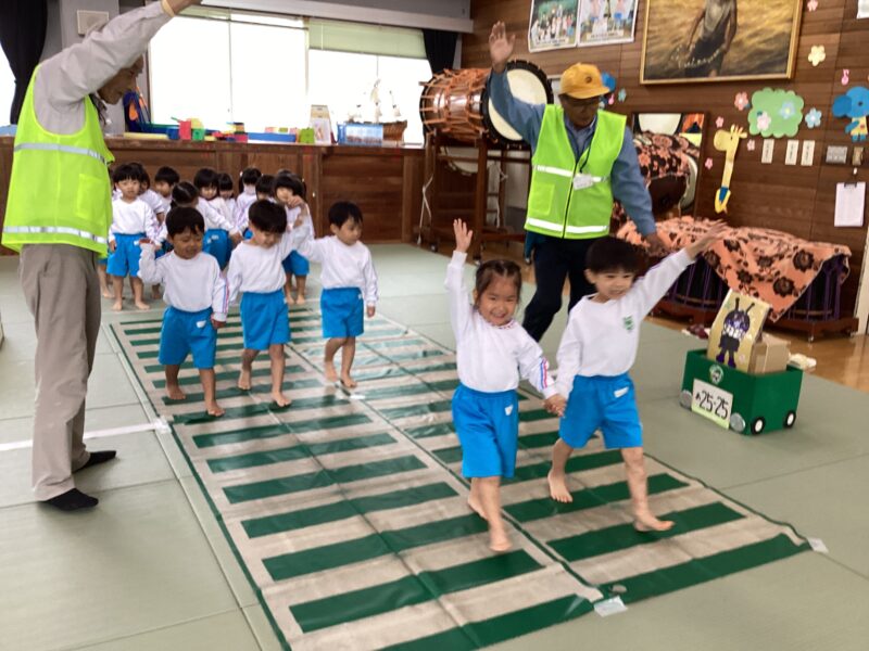 交通センターの方々が横断歩道の渡り方を教えに来てくれました。