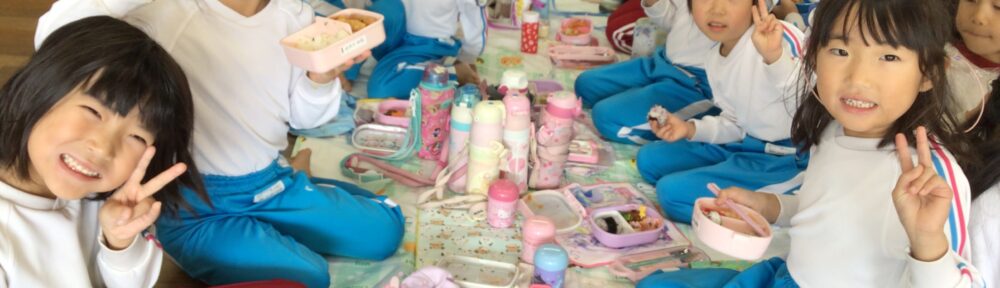 お弁当の日です。みんなで好きなお友達と一緒に座って食べました!