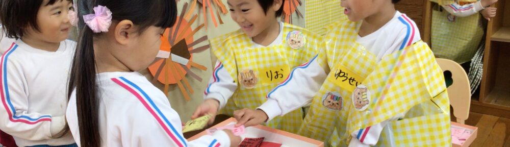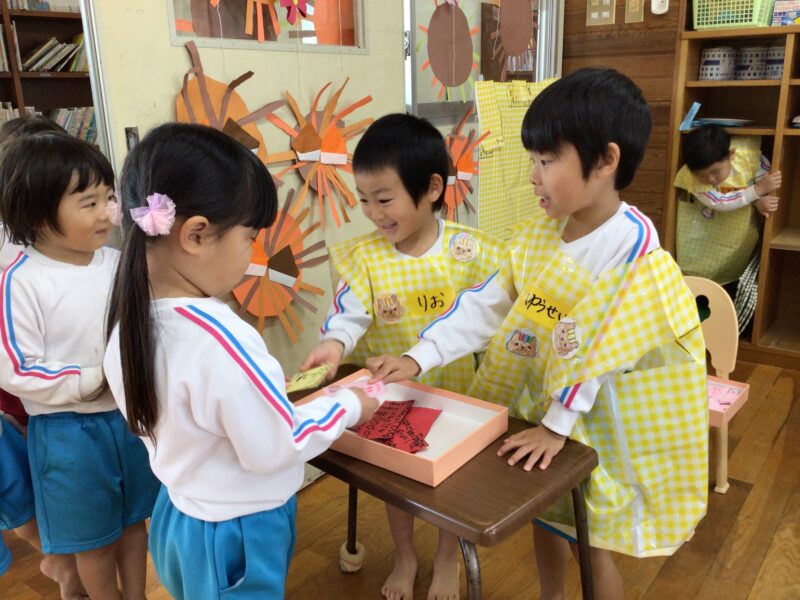 「いらっしゃい!チケットください!」「お願いします!」ちょとした会話もドキドキ! 投稿日時: 2025年12月26日 投稿者: yasunari 「いらっしゃい!チケットください!」「お願いします!」ちょとした会話もドキドキ! 扉にはってるの先日作成の「栗」にもご注目ください。 ダンスを見せたり、素敵な衣装を着るコーナーもありました! 11月27日の様子 共有: Facebook で共有するにはクリックしてください (新しいウィンドウで開きます) Facebook クリックして X で共有 (新しいウィンドウで開きます) X いいね:いいね 読み込み中…