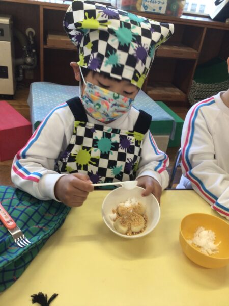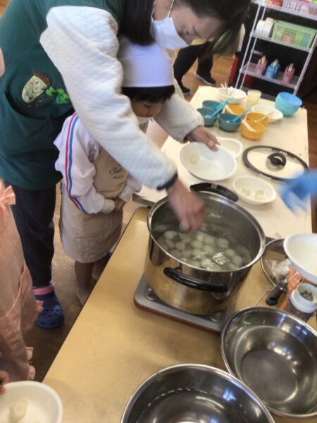 フードコーディネータの藤原さんにうさぎ組が教えてもらいました。白玉団子できあがり!