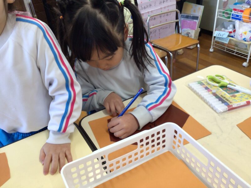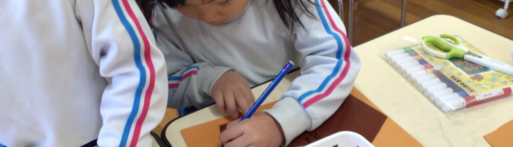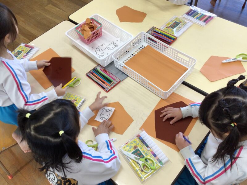 新年の祈願に「絵馬」を制作。五角形も型紙を利用して自分たちで切り抜きました。