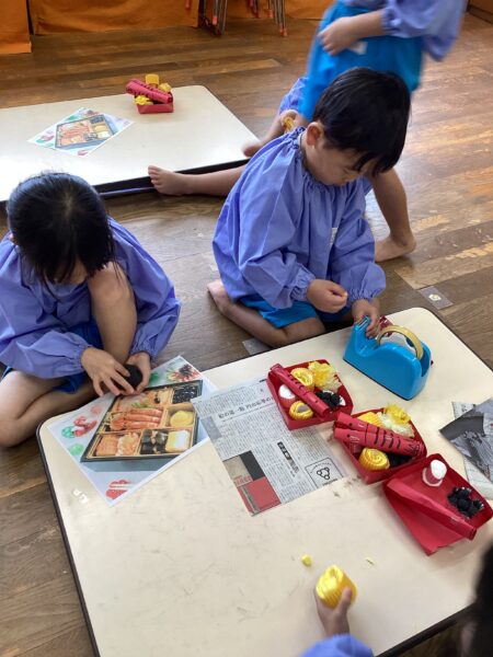なかよしグループで福笑いをしたり、おせち料理を作ったりしました。去年より豪華です!