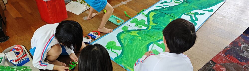 こちらのクラスは「ジャックと豆の木」の劇をします。今は制作に全集中!