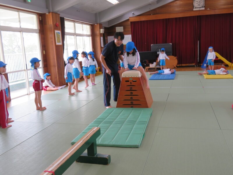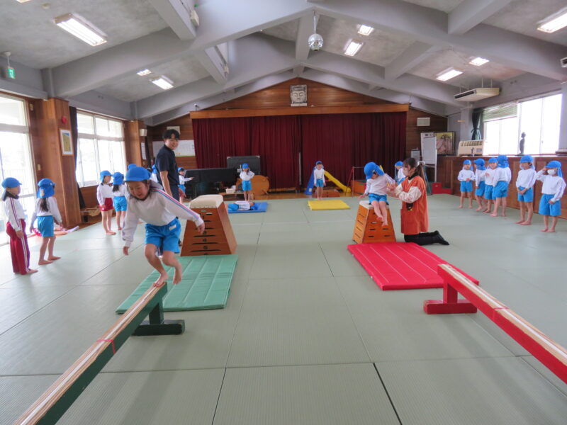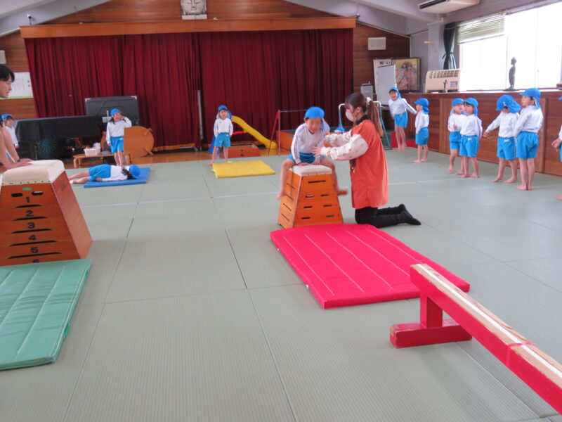 • 今日は体操教室がありました。跳び箱もできる子は7段8段にも挑戦しました。