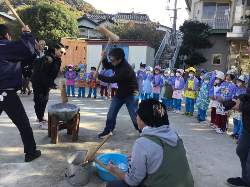 もちつきの歌を歌ったり、「がんばれ!」と応援したりしました。