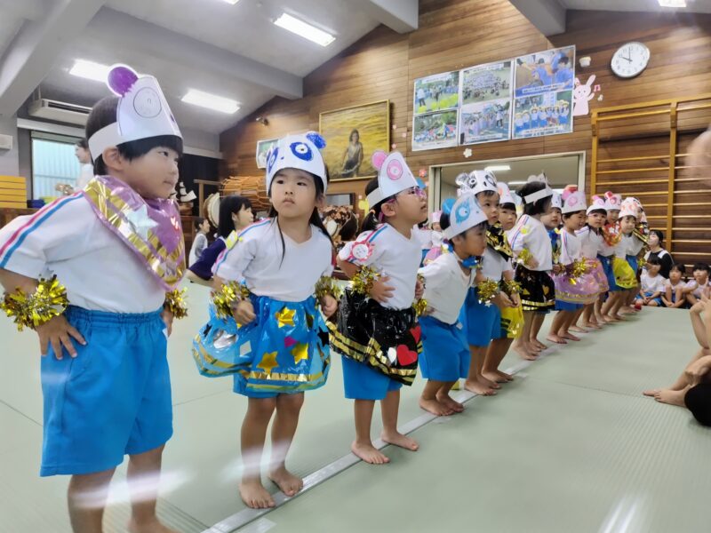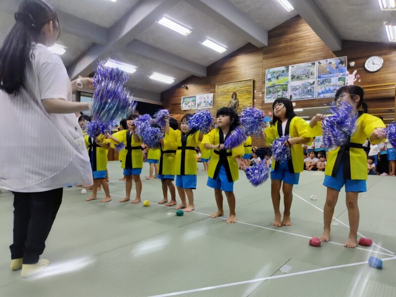 園庭や遊戯室で運動会ごっこを楽しみました。