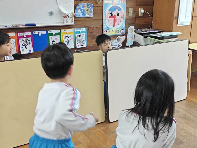 コーナー遊びの様子。鬼のお面作り、ペープサート、巨大制作などなど。 投稿日時: 2026年1月24日 投稿者: yasunari コーナー遊びの様子。鬼のお面作り、ペープサート、巨大制作などなど。 さてこれらの遊びは何につながっていくのでしょうか? 1月20日の様子